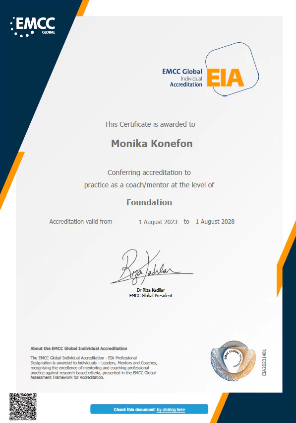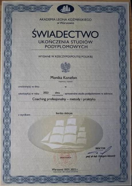 Zafascynowana językiem Goethego i kulturą niemiecką, jestem nie tylko coachem, ale również poliglotką. Jako absolwentka prestiżowych studiów podyplomowych „Coaching profesjonalny” na Akademii Leona Koźmińskiego, mam na swoim koncie liczne godziny pomagania ludziom w odkrywaniu ich pełnego potencjału.